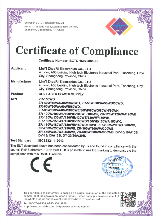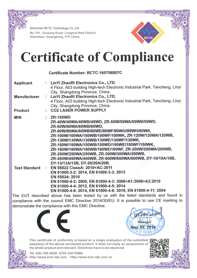 • 山東朝日電子有限公司是一家從事CO2激光電源研發、生產、銷售于一體的專業廠家,主要產品為40W/50W/60W/80W/100W/120W/130W/150W/200W/300W/400W二氧化碳激光電源。公司自2003年成立以來,始終堅持“以質量求生存,靠信譽謀發展”的理念.公司擁有業界高素質管理人才和技術精英,所有原材料都經過嚴格細致的檢測檢驗,生產流程嚴格貫徹執行ISO9001質量管理體系。卓越的品質、合理的價格和全體員工的不懈努力使我們的公司已穩步走在行業的前列。
